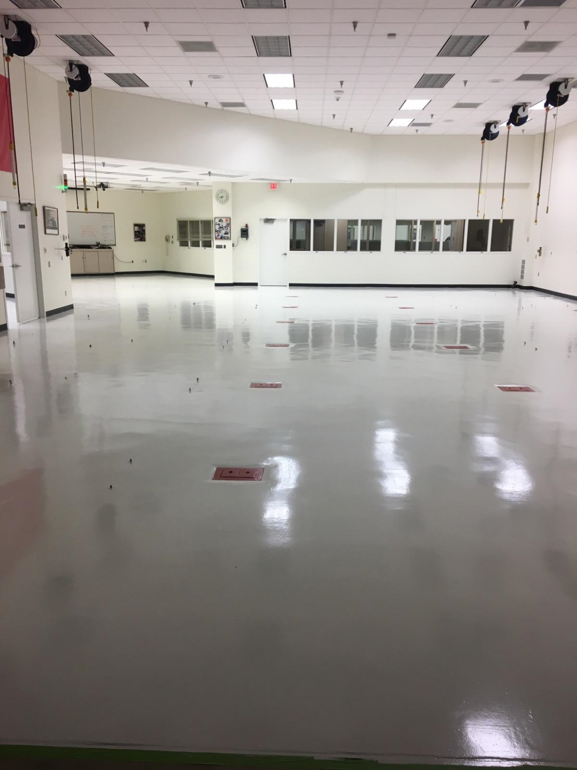 High performance top coats provide durability and longevity for facilities. They are great to use in areas with high traffic and where chemicals, oils or other substances may come in contact with the floor. In this particular facility, we started by grinding the floor and applying two coats of epoxy primer. We then completed the process by applying a top coat of a chemical resistant urethane. This will be an easy floor to clean and maintain for years to come.
